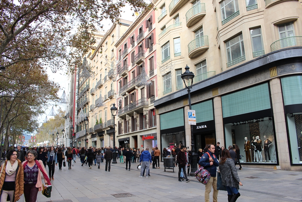 素敵なショッピング通りです。カタルーニャ広場から大聖堂付近までが